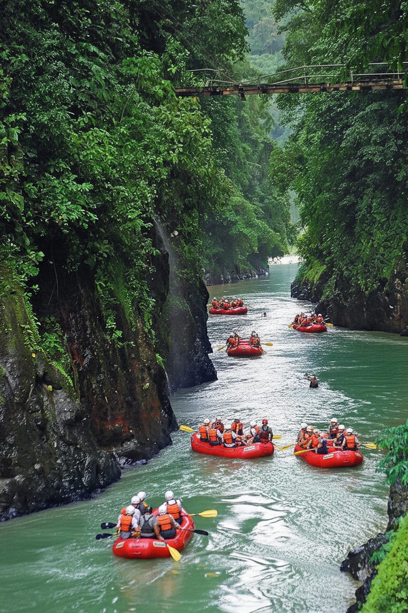 Choose half-day, full-day or multi-day expeditions. Multi-day trips include overnight stays at eco-lodges along the river, surrounded by jungle sounds. Safety is excellent: certified guides, helmets, life jackets and full instruction.